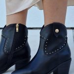 BOTIM ESTILO TEXANA COM TACHAS. SALTO DE 6CM. EXTERIOR EM POLIPELE INTERIOR EM MATERIAL TEXTIL. MADE IN P.R.C