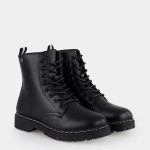 Botas em pele sintética com cordões e fecho lateral. Interior em tecido e sintético. Produto 100% vegano. Produto em que que não são utilizadas matérias-primas de origem animal, mas isso não significa que não contenham materiais sintéticos